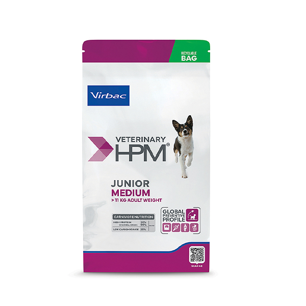 Täissööt kutsikatele – suured tõud (täiskasvanud koera kaal ≤25 kg) vanuses 2 kuni 7 kuud/ keskmised tõud (täiskasvanud koera kaal 11/25 kg) vanuses 2 kuni 6 kuud.