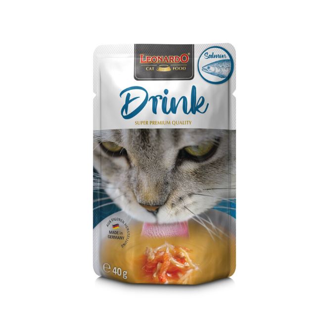 LEONARDO Drink puljong-konserv ahvatleb oma maitse ja lõhna tõttu kassi jooma. Piisav vee tarbimine toetab kassi kuseteede tervist.