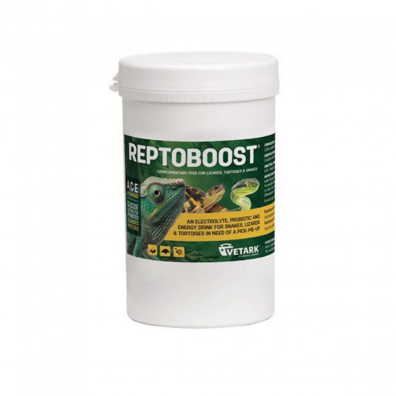 Reptoboost® sisaldab dekstroosi (energia), A-, C- ja E-vitamiine, elektrolüüte ning täiendavaid pre- ja probiootikume, mis toetavad nõrka roomajat ning aitavad taastada tema energia- ja vedelikuvarud. Joogivette lisatuna annab Reptoboost® lisaenergia roomajatele, kes on veterinaarsel ravil, või kilpkonnadele, kes on just talveunest ärganud.